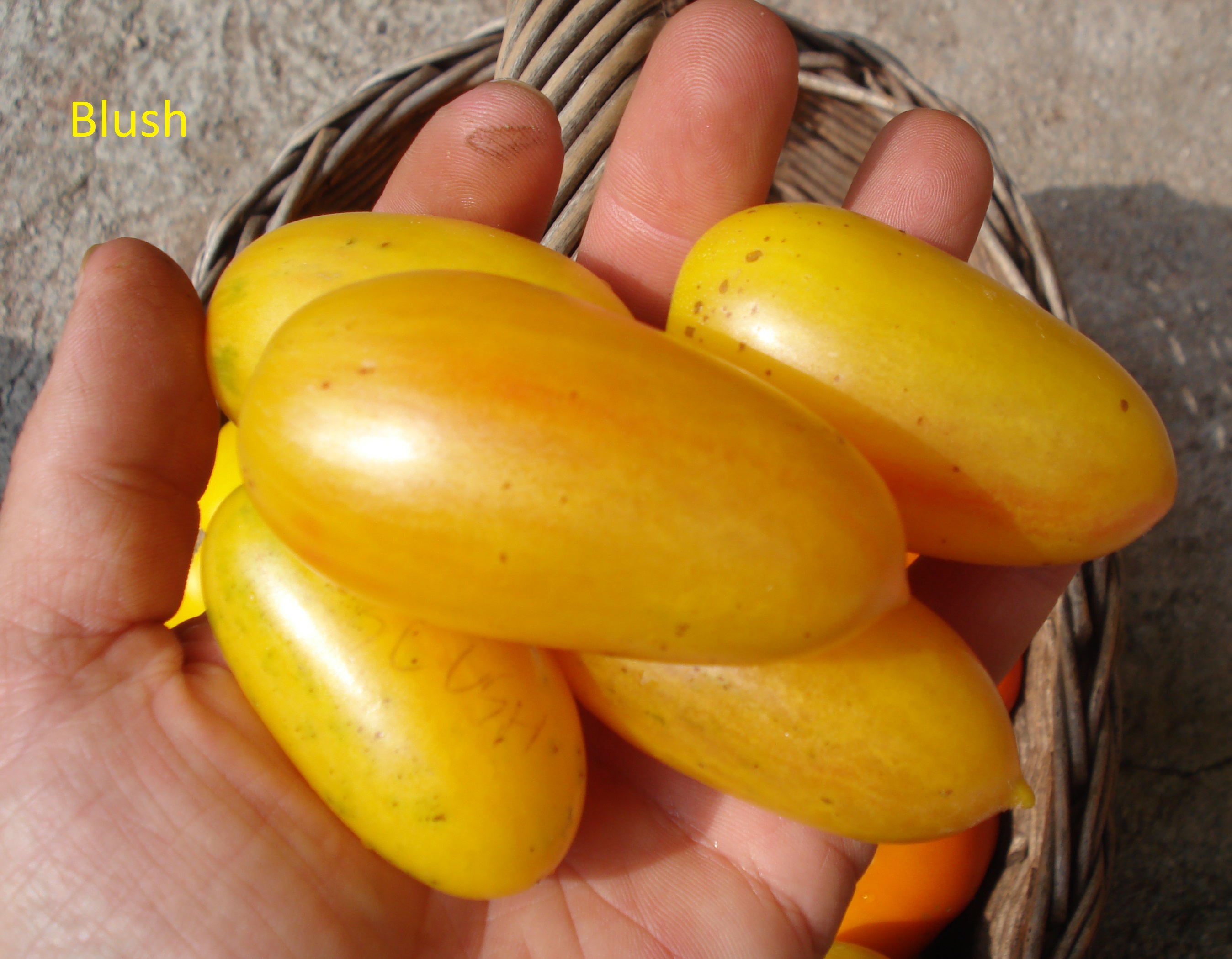Elongated cherry type. Orenge-yellow with red stripes. Perfect for snacking. Vigorous plants.
