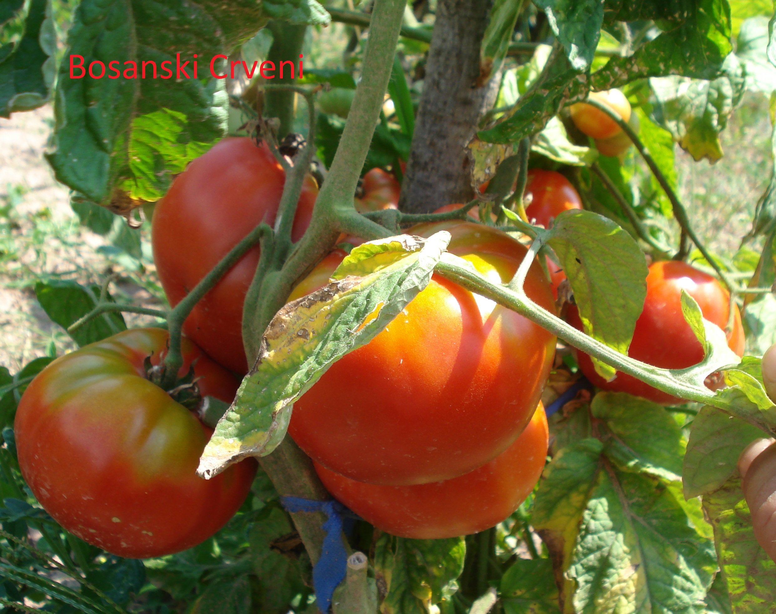 Intermediate between a salad and a beefsteak. Red and aromatic. Tough heirloom from Bosnia, where it's "just" the tomato any granny grows in her garden.