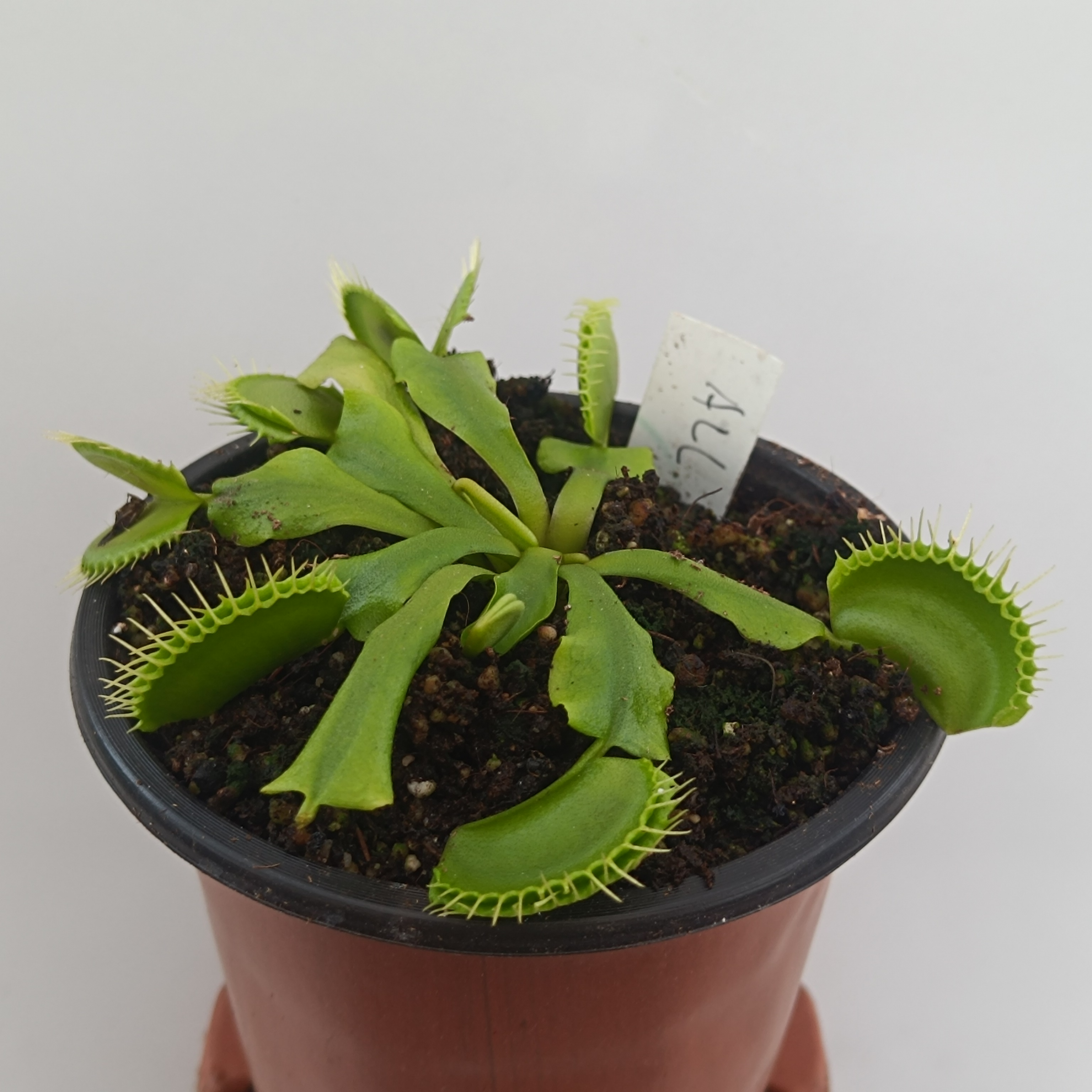 All Green is a completely green venus flytrap. In bright sunlight it turns a bright yellowish green. It does not produce red pigments (anthocyanins) at all, so it is an antho-free plant.