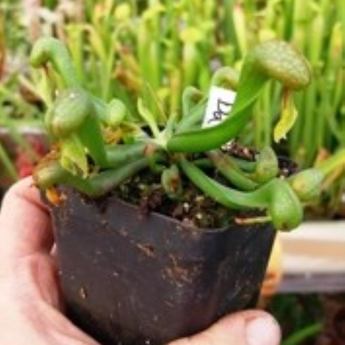 Darlingtonia californica is also known as Cobra lily and the California pitcher plant. It is part of the family Sarraceniaceae, together with Sarracenia and Heliamphora. Cobra lily is native to Northern California and Oregon. In nature it grows on serpentine soils in bogs and seeps with flowing cold water. The leaves can survive high temperatures. Although the plant can regenerate from its root system after a fire, in general the roots must be kept below 10C at all times.