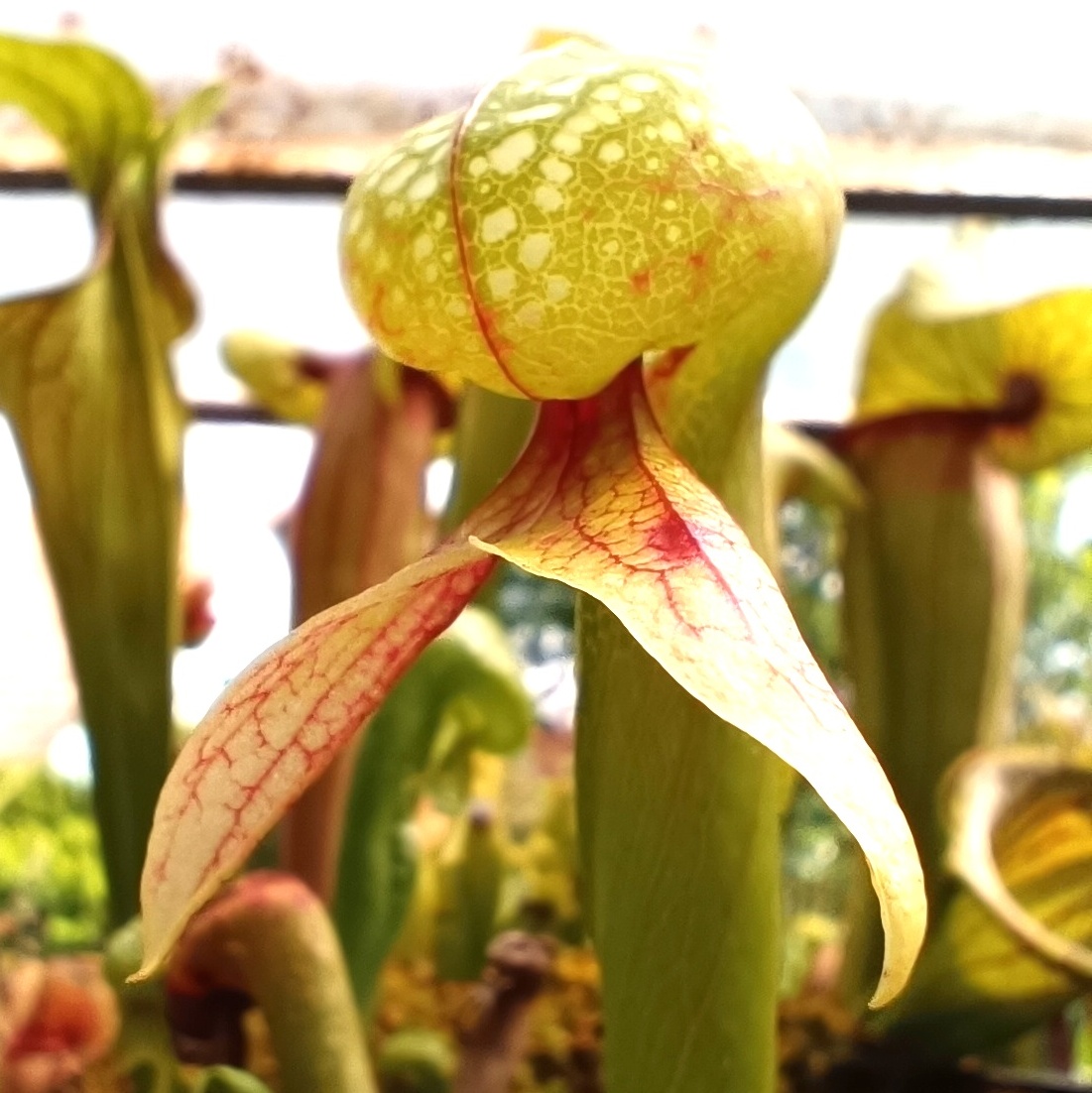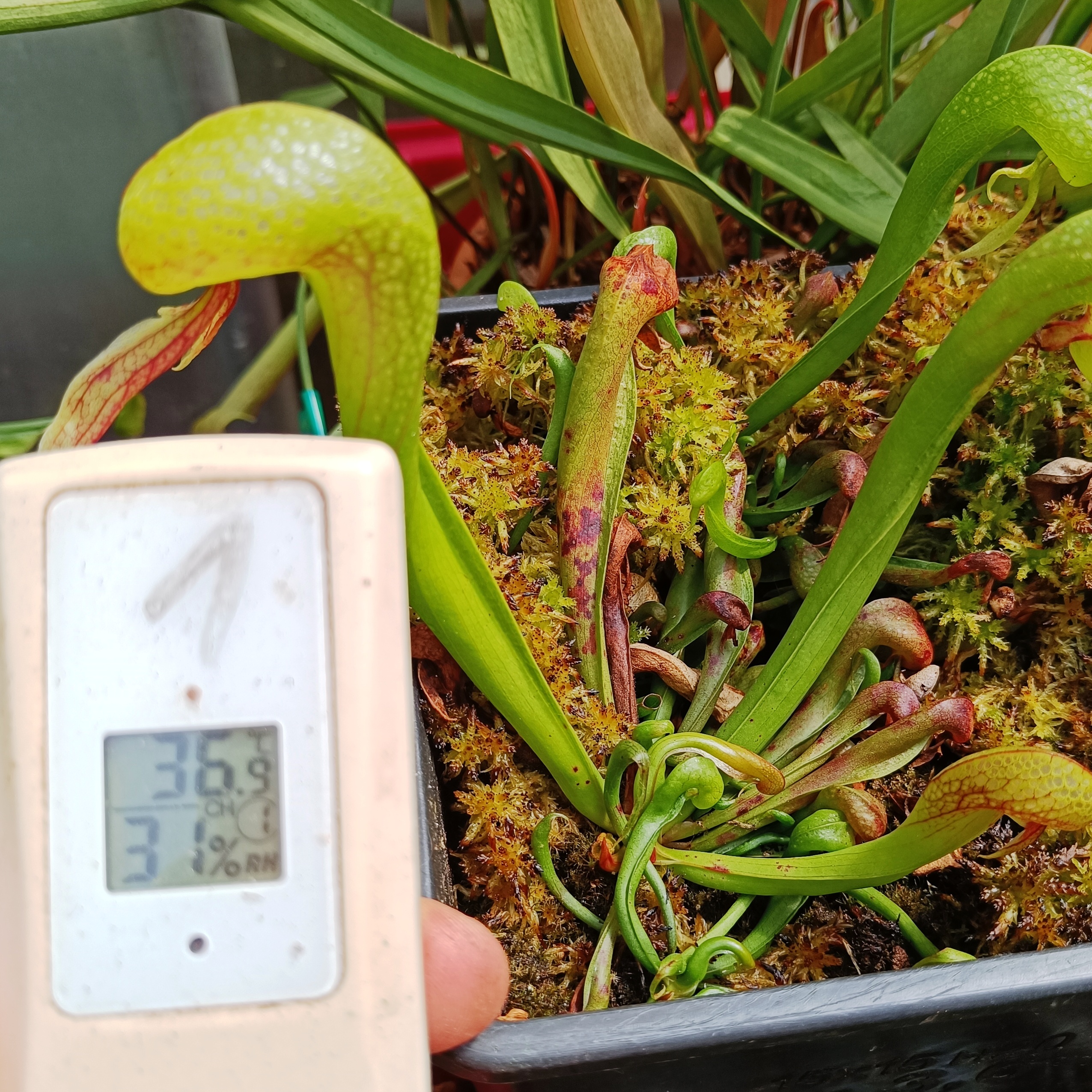 When I was starting my journey into the world of Carnivorous plants, keeping a Cobra lily alive long term ment Macgyvering a system, that would maintain a flow of cold water over the roots. However, careful selection of stock collected from the heat-hardiest populations produced plants that are easier to grow. Much, much, much easier. HEATPROOF can in fact be grown just like a Sarracenia. I actually keep my mother plant in a tray together with some smaller Sarras. The plant still needs an airy substrate mix and an oversized pot, just to make sure the roots get enough air and the substrate doesn't overheat in summer - but that is nothing compared to growing the plant in a converted fridge.