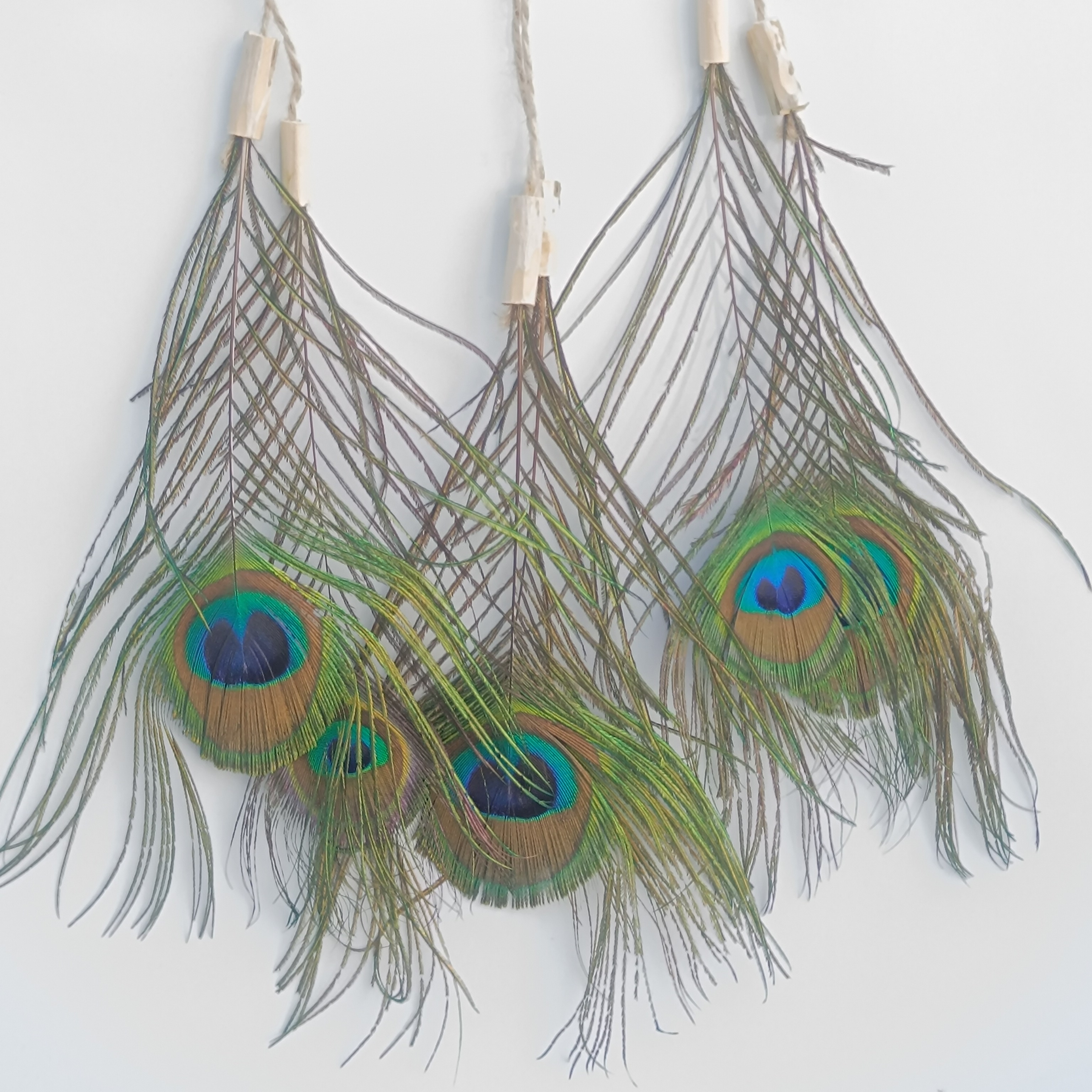 Dreamcatcher handmade out of natural and up-cycled materials with black feathers. Feathers are 100% ethical, they are naturally shed by my pet birds. I carefully find symmetrical feathers for each item I make. If you visit or stay at our camping farm you can see all the birds whose feathers I use to make dreamcatchers and jewellery.