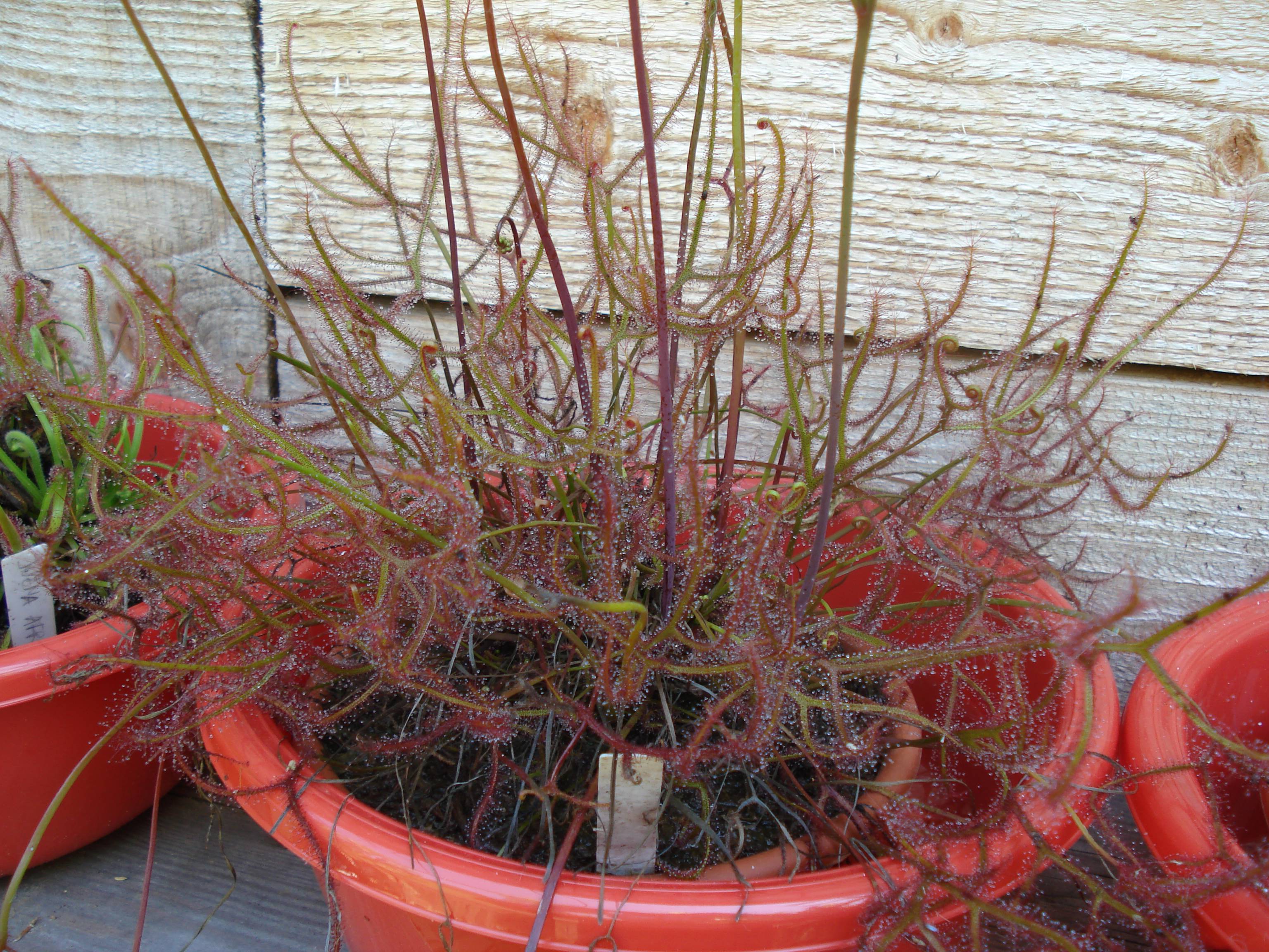 One plant per pot, flowering size. Sub-tropical, dormant in winter, may go dormant in summer if too hot. In case the crown dies off due to heat stress in summer, move the pot to a cooler location and/or wait untill autumn. Drosera binata is hardy if a bit heat sensitive: it grows back from the roots with a venegance.