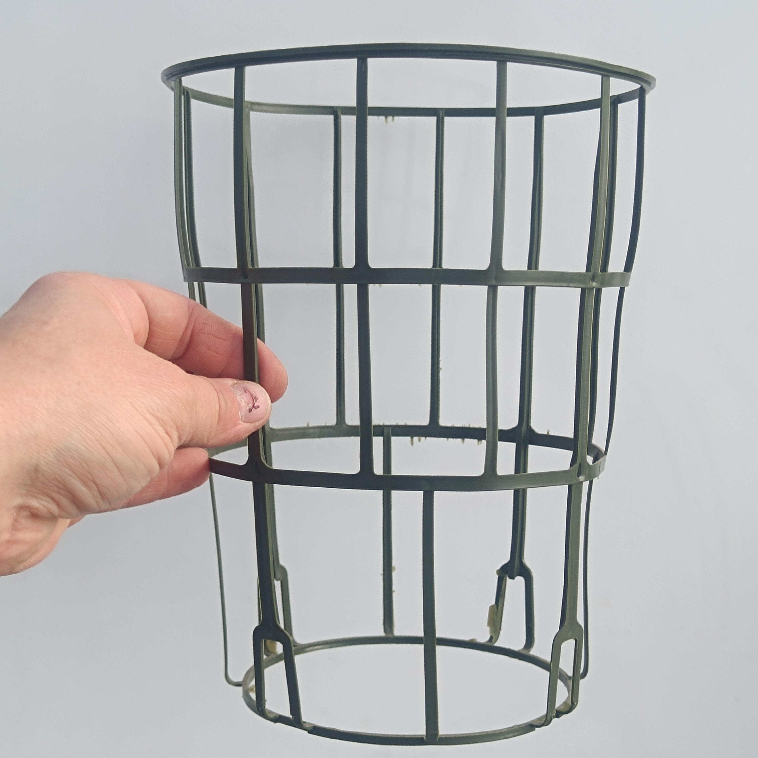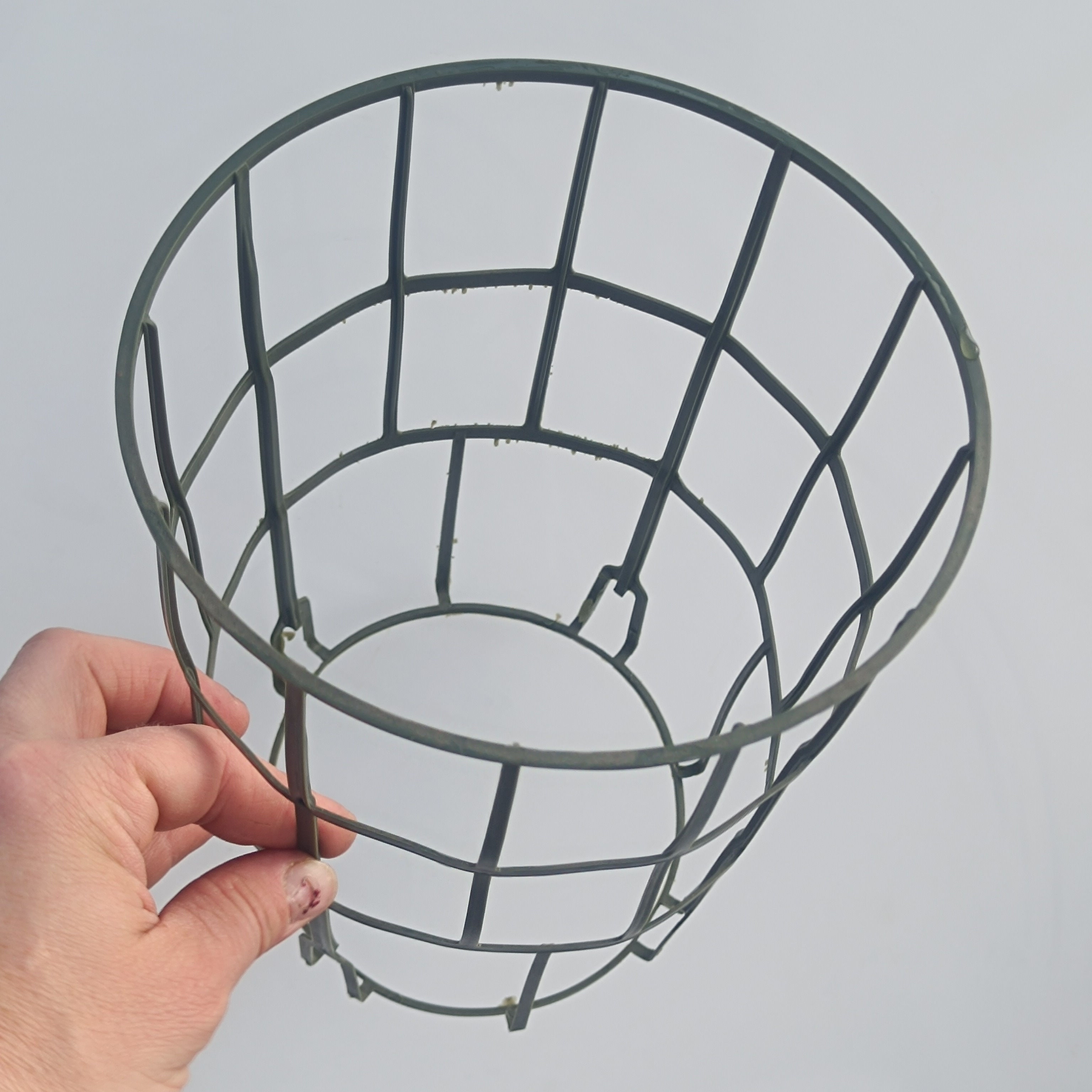 Gabbietta is the solution to the drooping Drosera binata leaves and pitchers of Sarracenia. This is the largest gabbietta model on the market. It's about double the size of the gabbietta you'll se on some potted herbs. I find only this size truly usable and firm enough for carnivorous plants. It will fit around the crown of the plant, on top of the soil, on the edge of the pot or around the pot, depending what size of pot or plant you'll be using it with.
