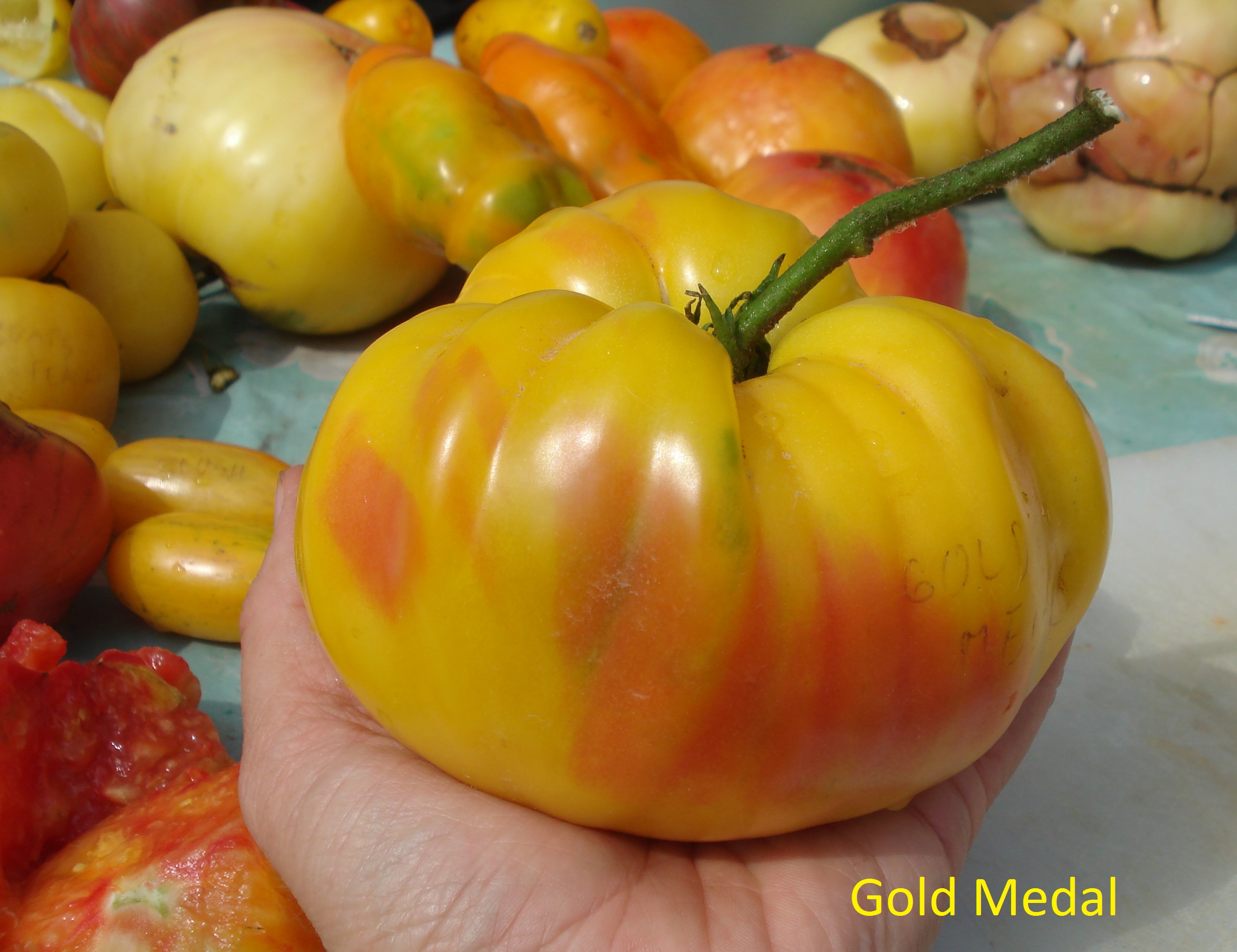 A heiroom mentioned in the New York seed catalogue of 1921. May be older. It was first known as Ruby Gold, but made popular under the name Gold Medal decades later.