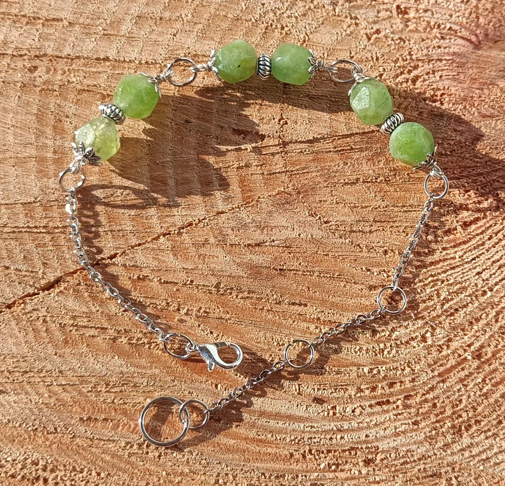 Prehnite is considered a stone of unconditional love and the crystal to heal the healer. It enhances precognition and inner knowing. Enables you always to be prepared. Prehnite calms the environment and brings peace and protection. This model of bracelet has 6 crystal beads because in number 6 is the Mother of all numbers, as it links families and keeps people together. Number 6 is trustworthy, sympathetic, gentle, and loving. There are also 3 Tibetan alloy beads, as number 3 is the Creative communicator or the Number of joy. It symbolizes optimism, enthusiasm, and the ability to find beauty in the world around us. This bracelet is closed with a lobster claw and the size is ajustable, so it will fit wrists from 17 cm to 24 cm. If you need a different size or have any questions please dont hesitate to contact me.