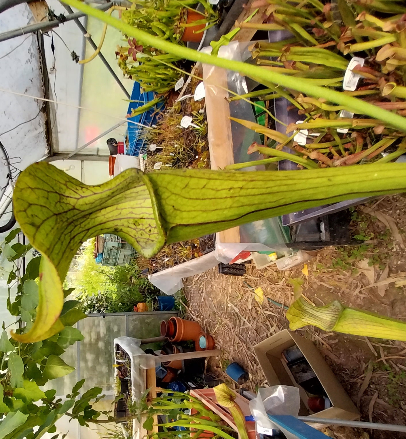 Sarracenia rubra is generally smaller and narrower than most species, usually not exceeding 65 cm in height. Sarracenia rubra is generally clump-forming.