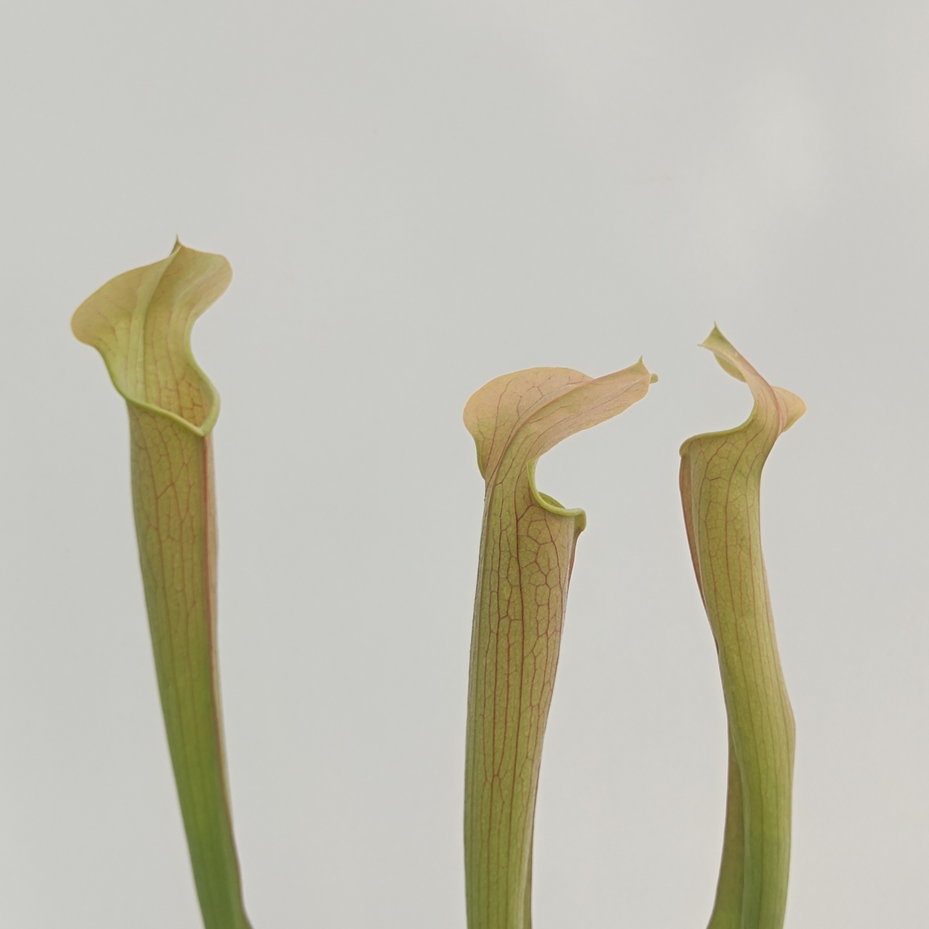 Sarracenia rubra subsp. wherryi is named after the famous botanist E.T. Wherry. It is commonly found with Sarracenia leucophylla, although hybrids are rare. In essence, this plant looks like a short version (8-45 cm, average 18 cm tall) of the taller Sarracenia alabamensis subsp. alabamensis (18-71 cm, average 40 cm tall). This clone is very pubescent. As is typical for the subspecies the spring leaves are kind of floppy, with a large midrib. It is speculated that this is to maximise the surface area for photosynthesis in spring, carnivory becoming really important only in summer.
