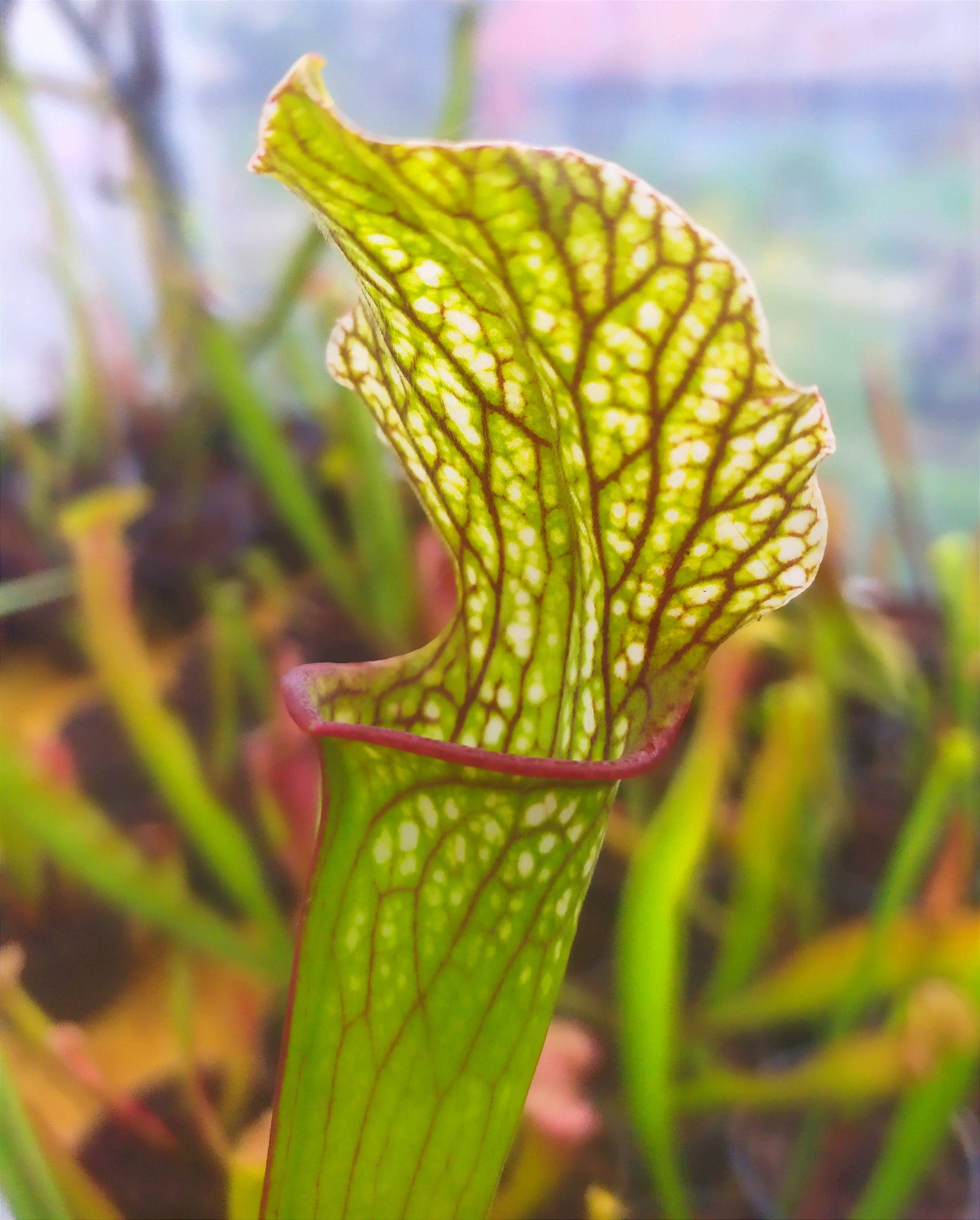Sarracenia x areolata 'DIVERSIFLORA PEARL' is natural hybrid, a plant with known location but with open polinated parentage. The plants in our collection are grown from seeds originally collected in the wild on the Alabama - Missisipi border. We acquired them as a mix of seedlings and three of them grew to maturity.